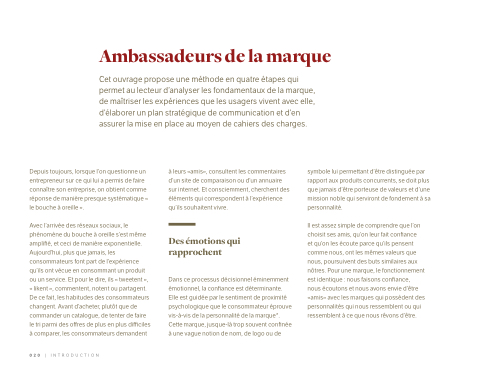 Cet ouvrage propose une méthode en quatre étapes qui permet au lecteur d’analyser les fondamentaux de la marque, de maîtriser les expériences que les usagers vivent avec elle, d’élaborer un plan stratégique de communication et d’en assurer la mise en place au moyen de cahiers des charges.